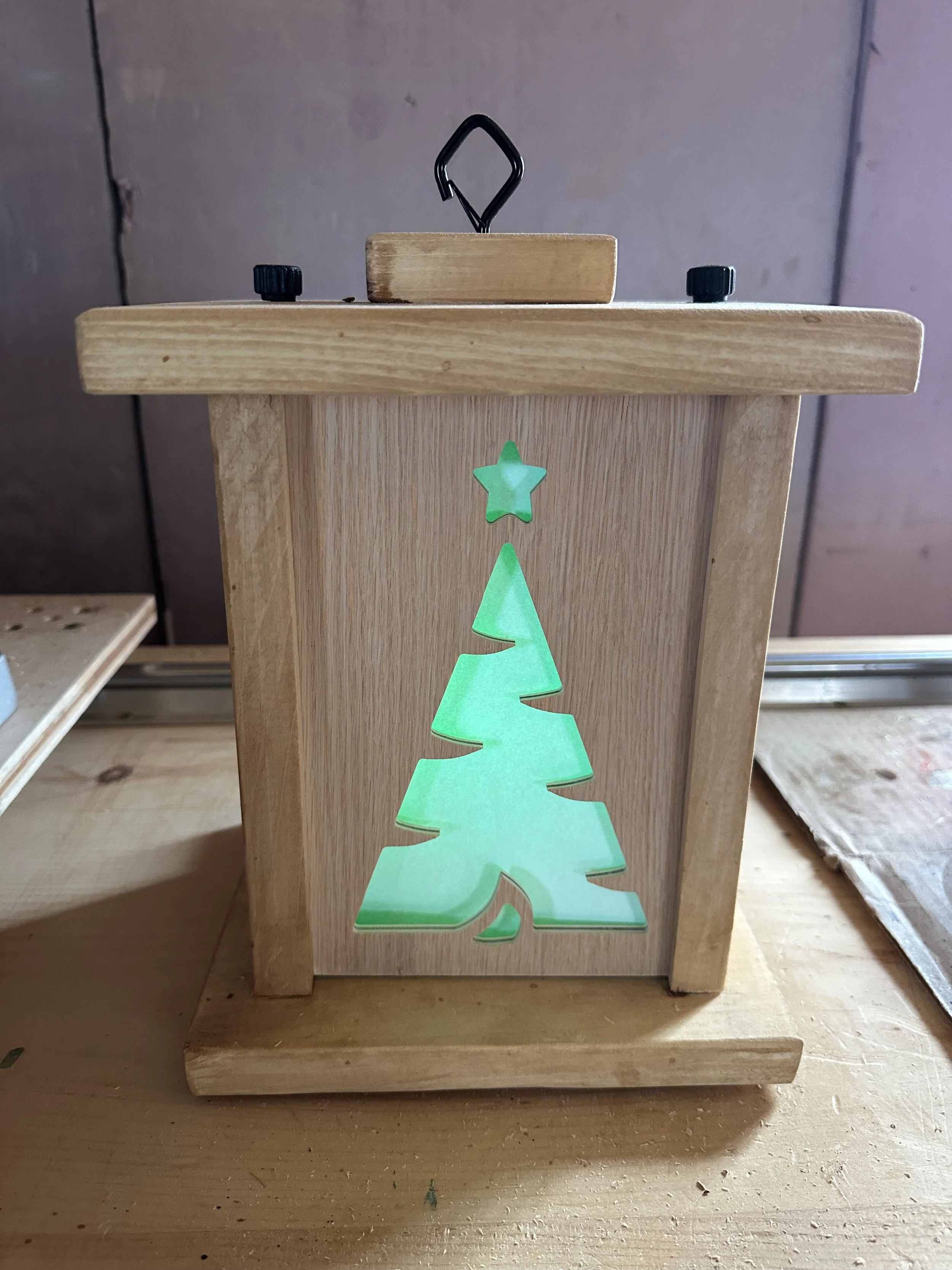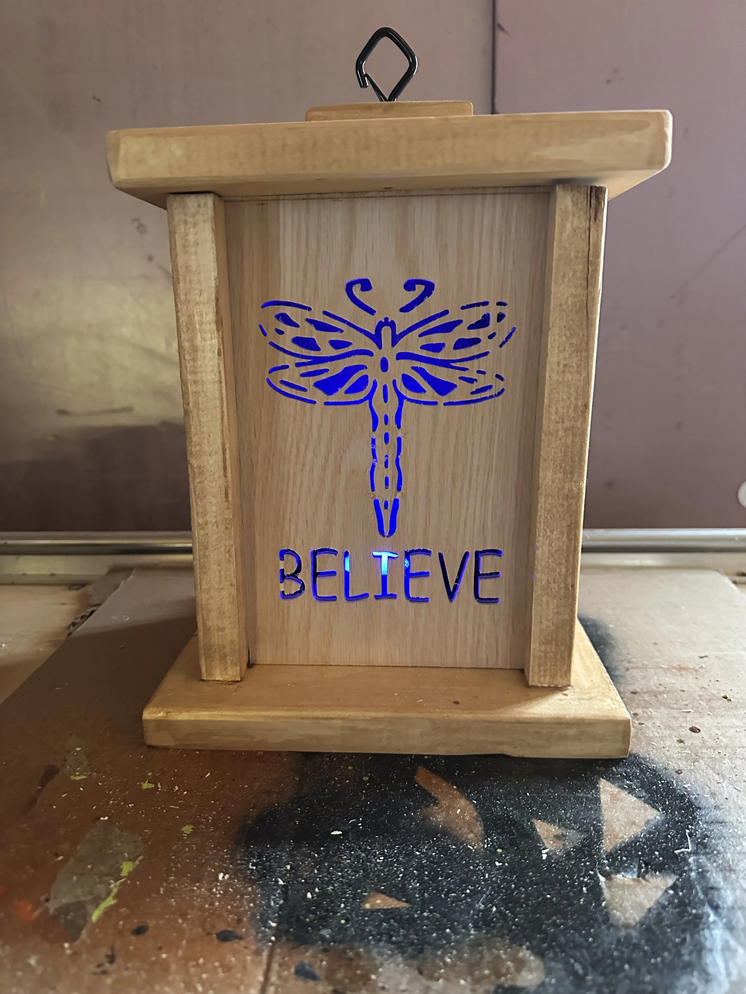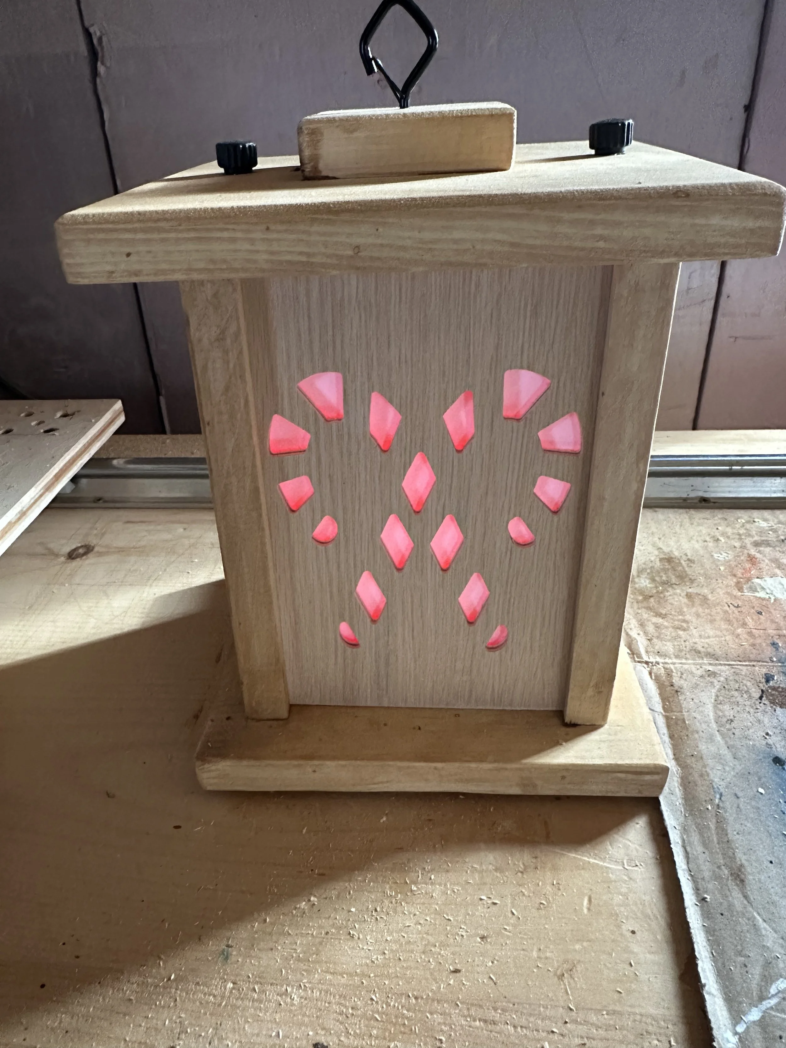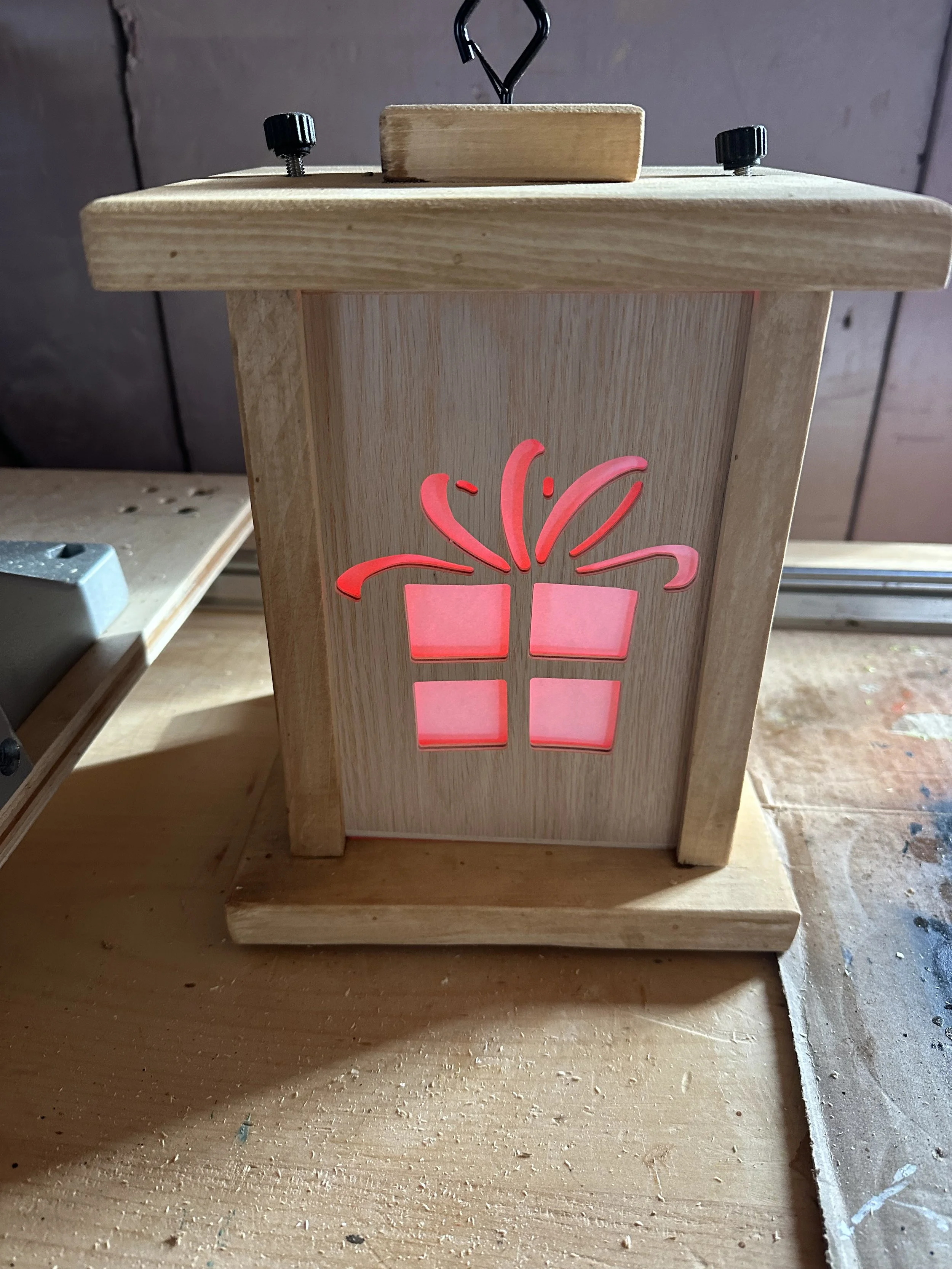 Latest Version of the Lantern with thumbnail screws at the top for easy access to change the screen or batteries for the LED Light