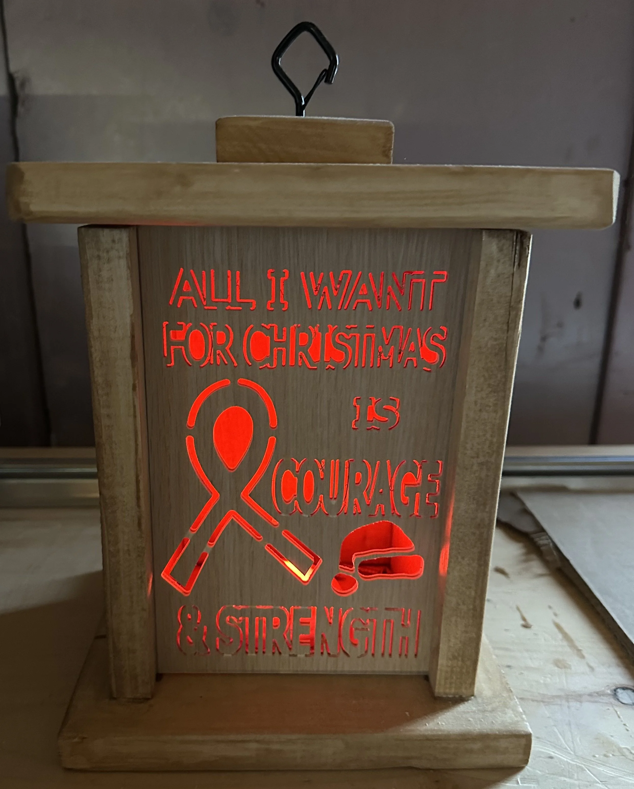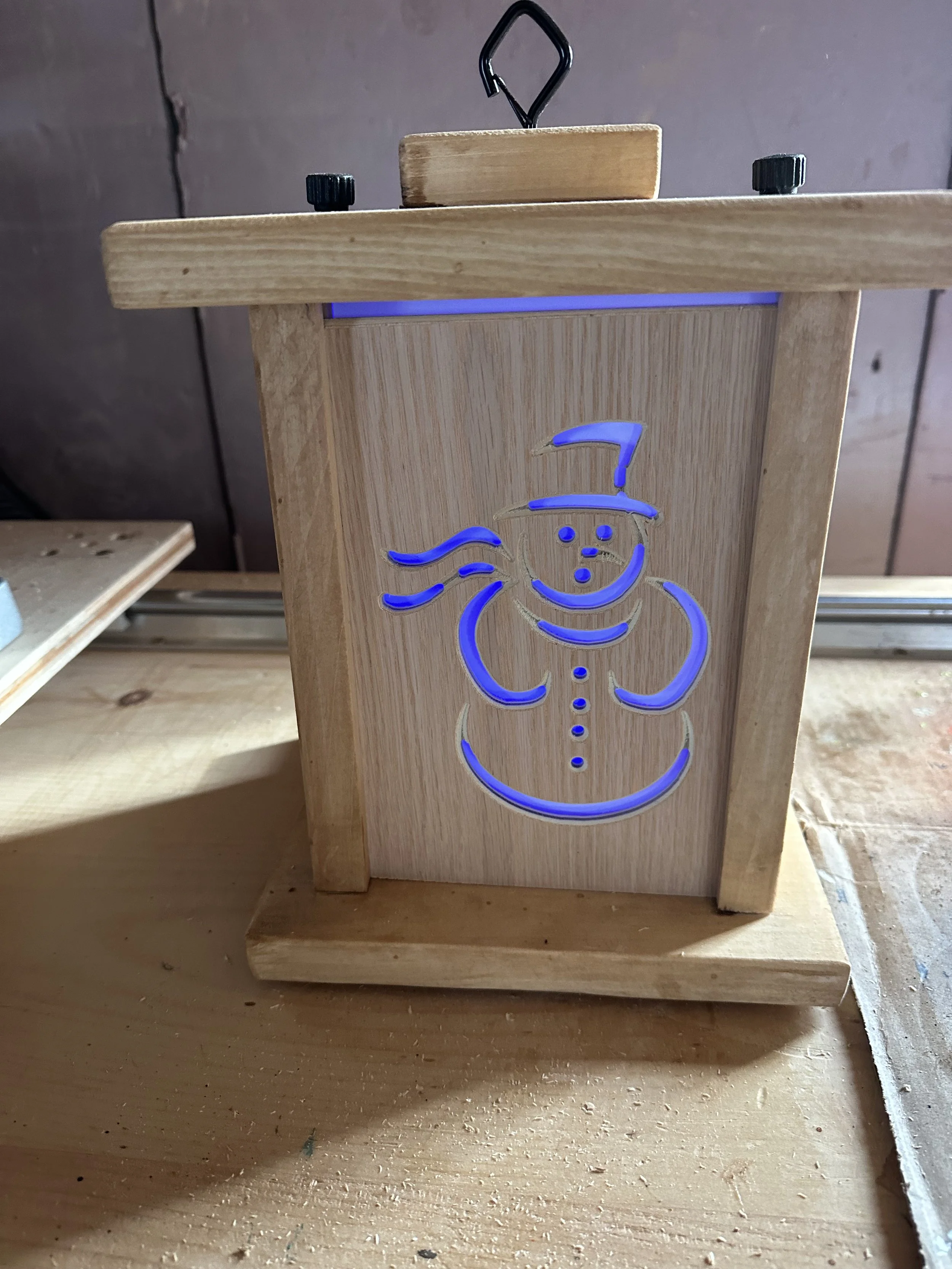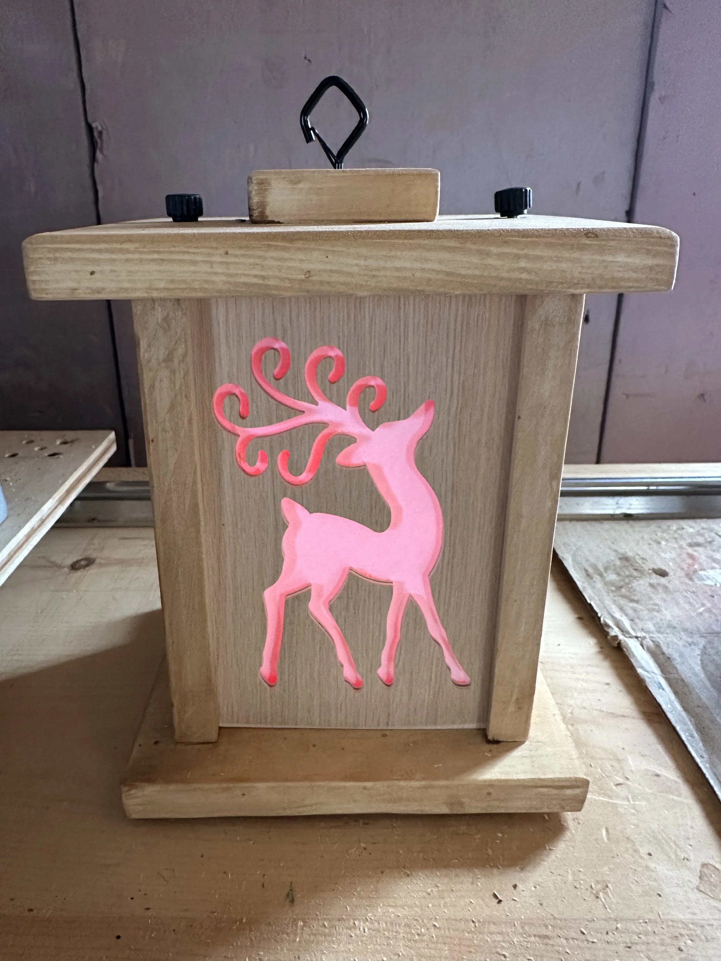Latest Version of the Lantern with thumbnail screws at the top for easy access to change the screen or batteries for the LED Light