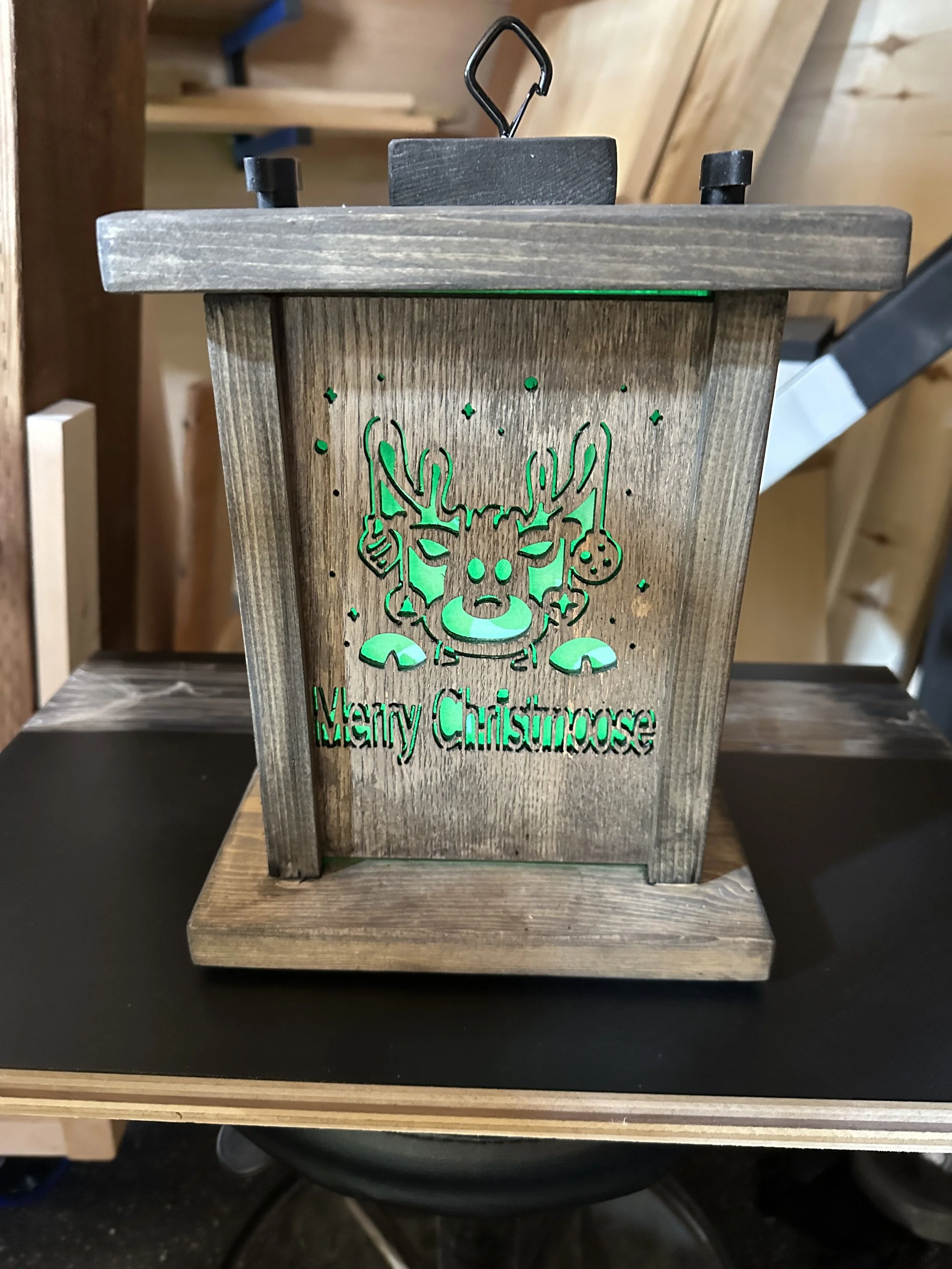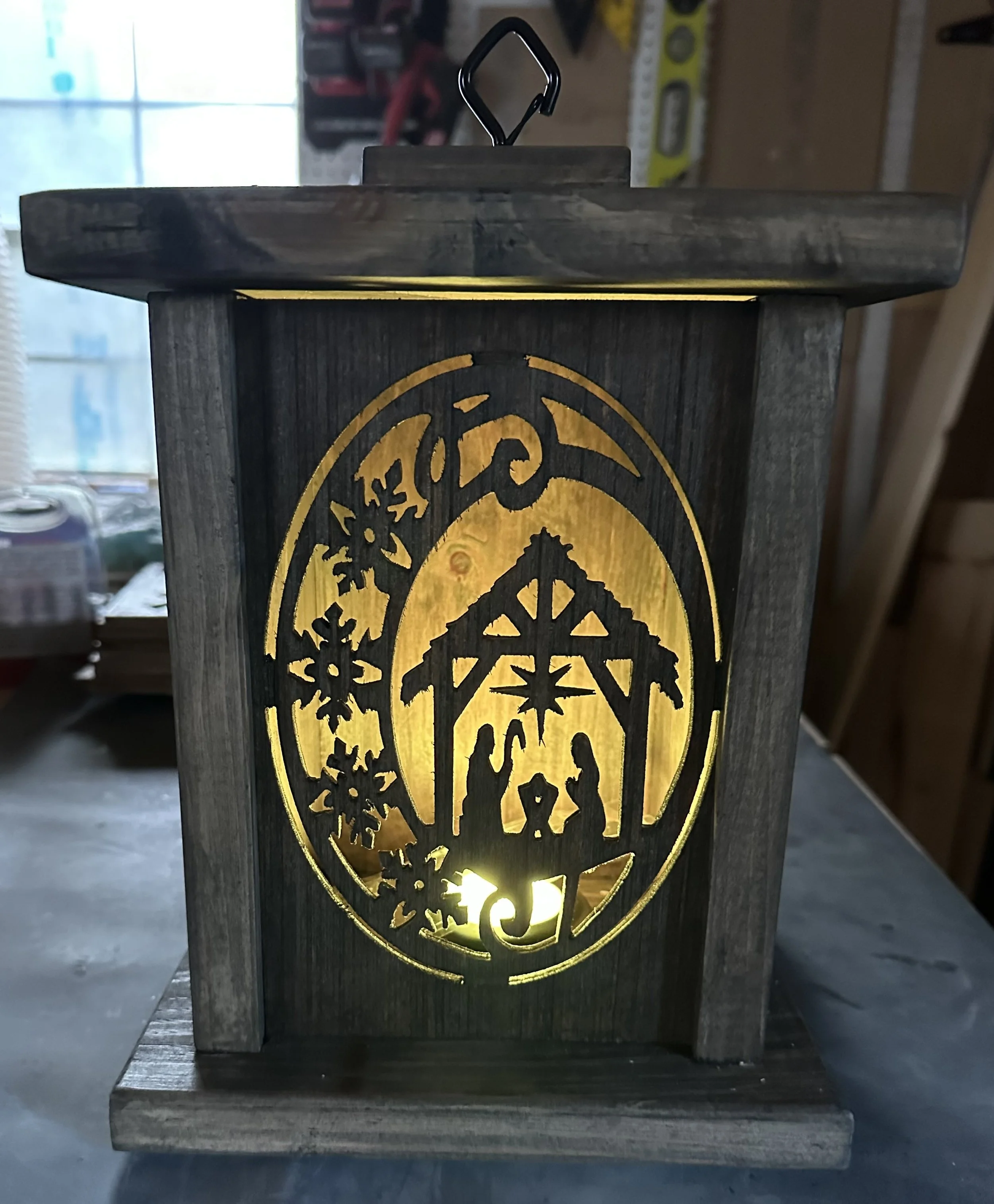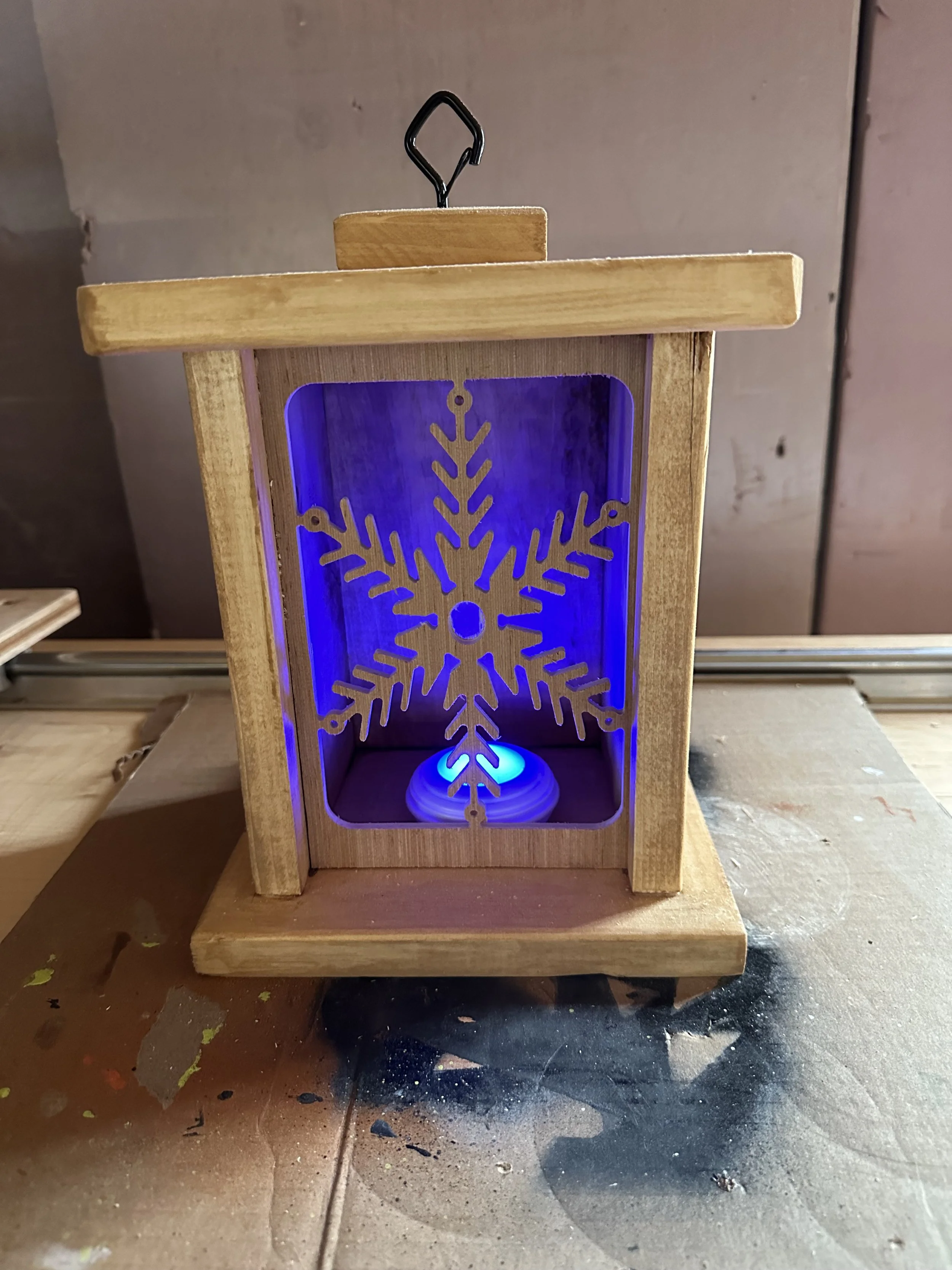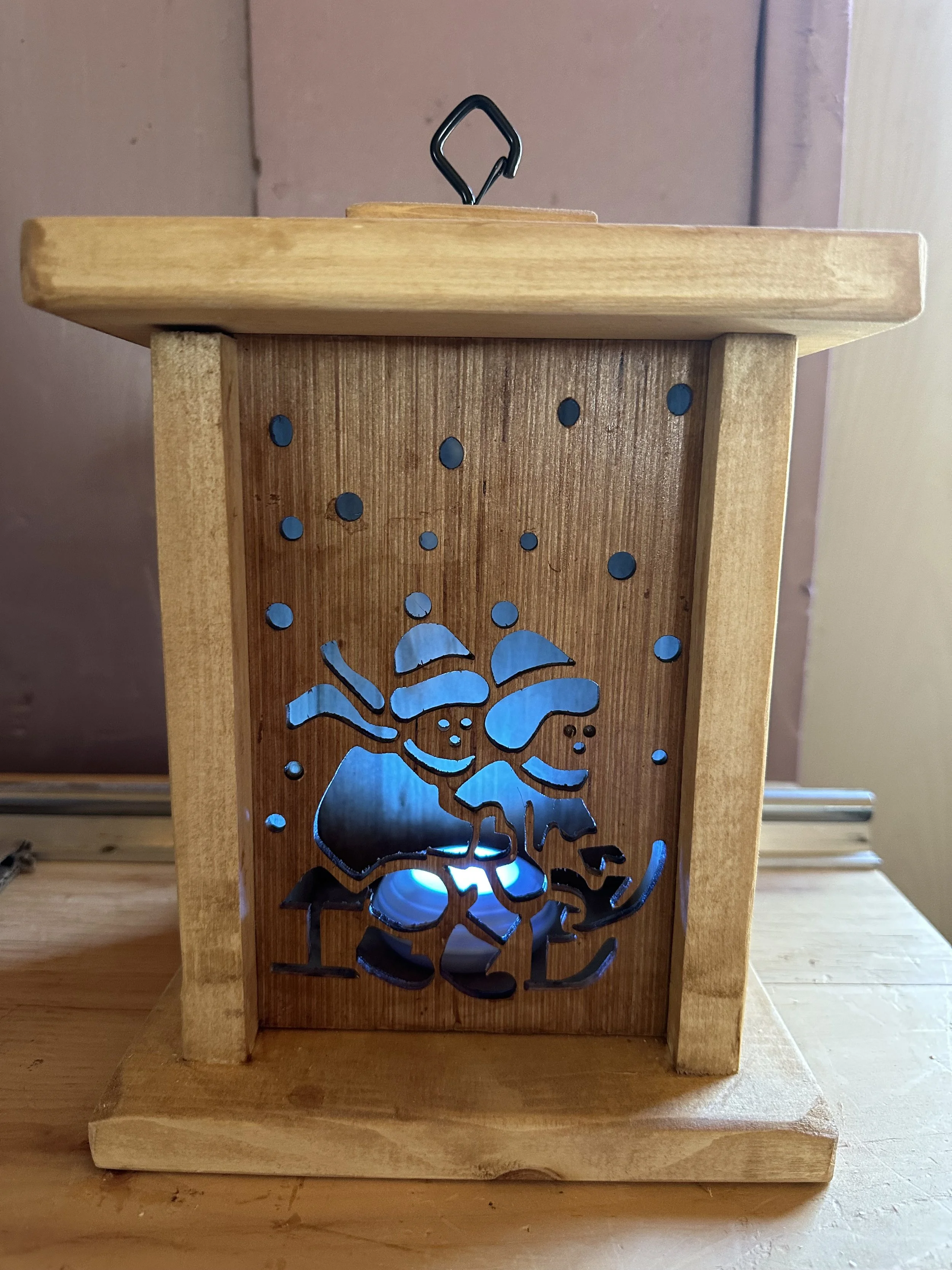 Latest Version of the Lantern with thumbnail screws at the top for easy access to change the screen or batteries for the LED Light