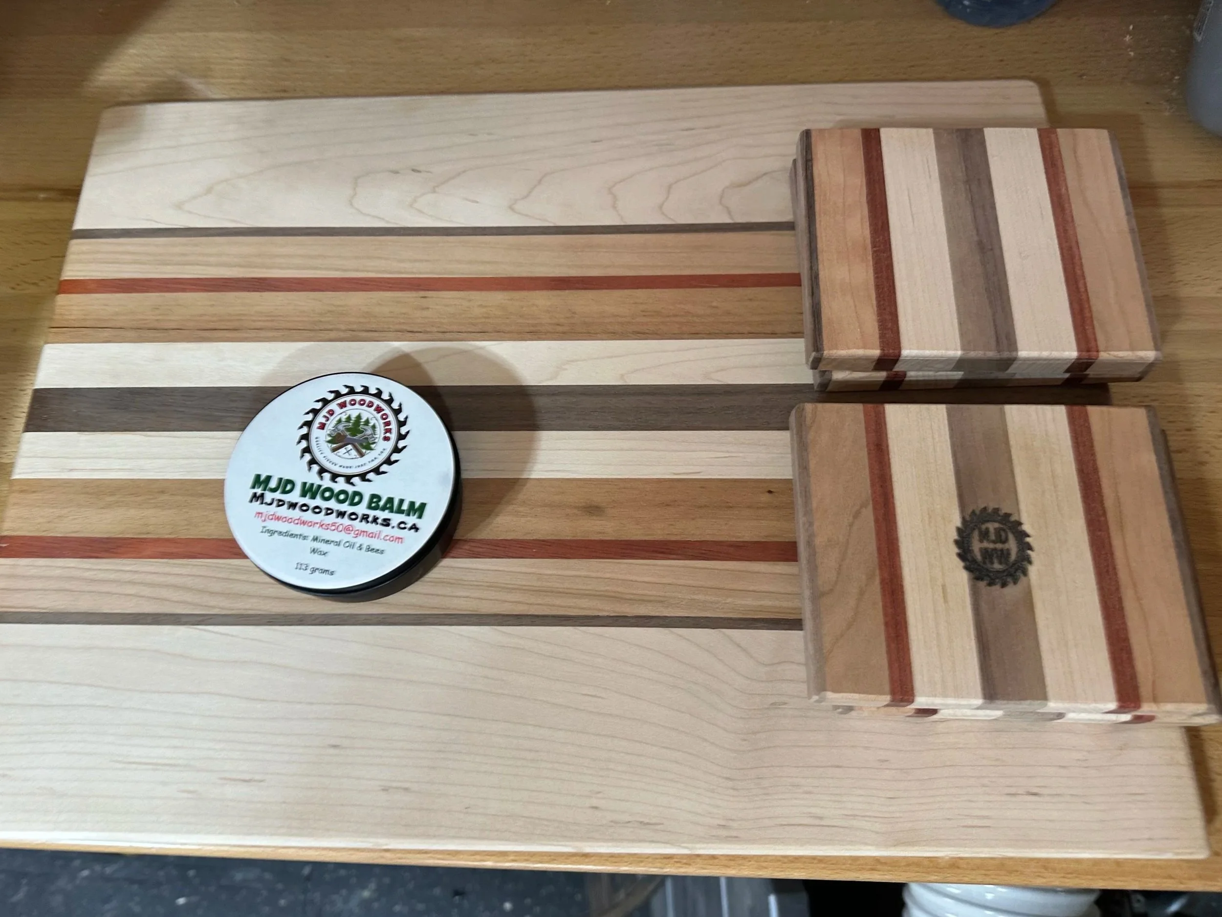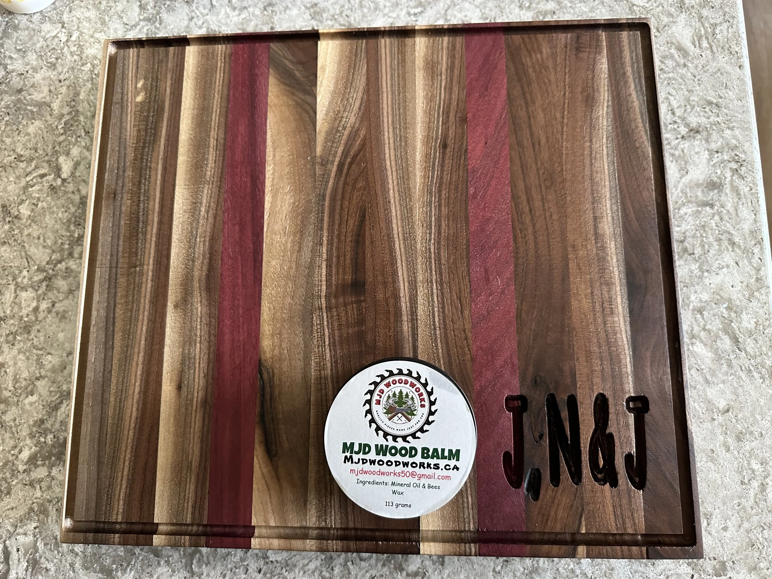Need a product to protect your solid wood creation? We have wood balm for just that purpose. Food Grade Mineral Oil and All Natural Bees Wax to help keep those creations looking as good as the first day you received them. Contact us to get yours!