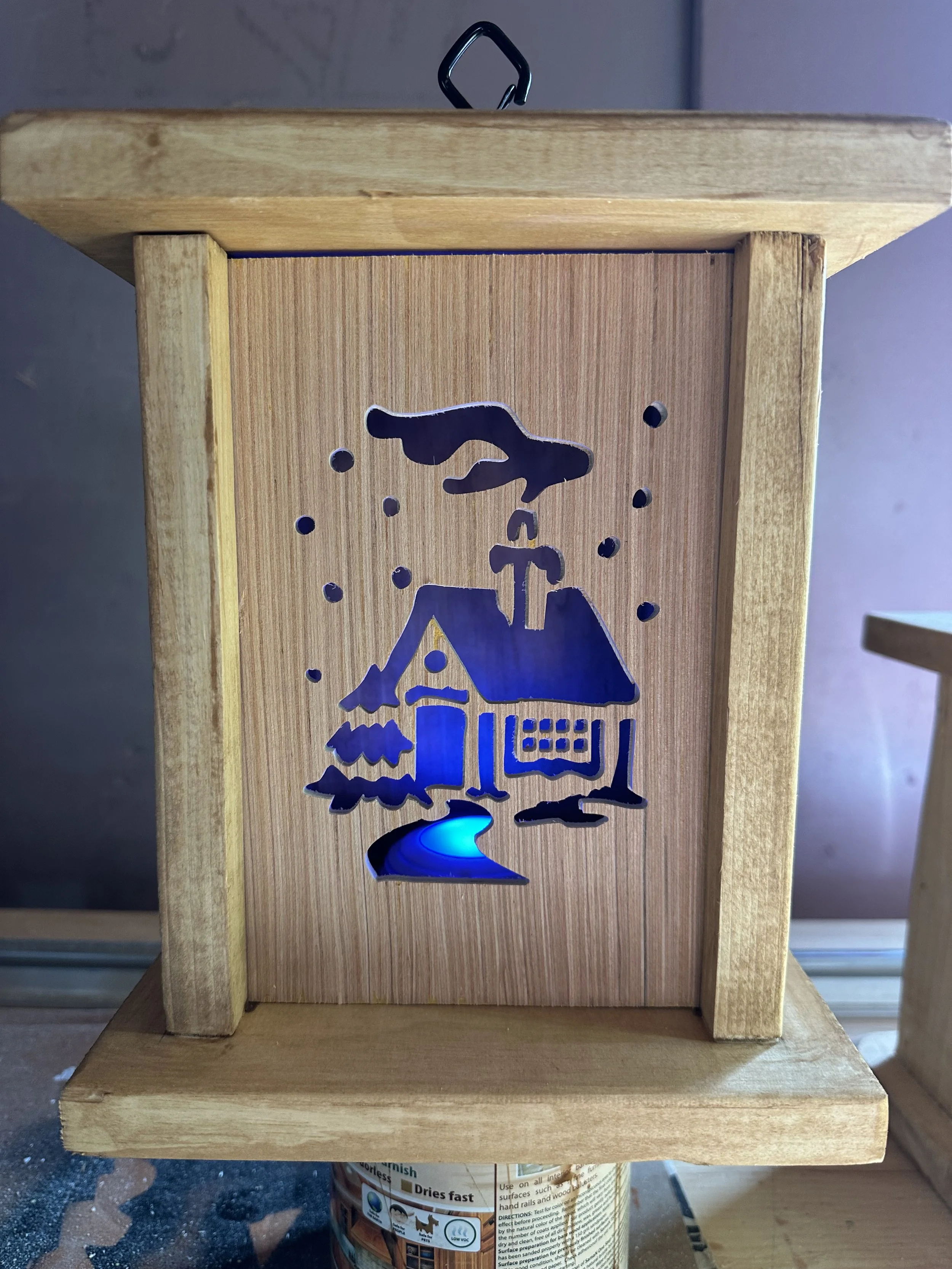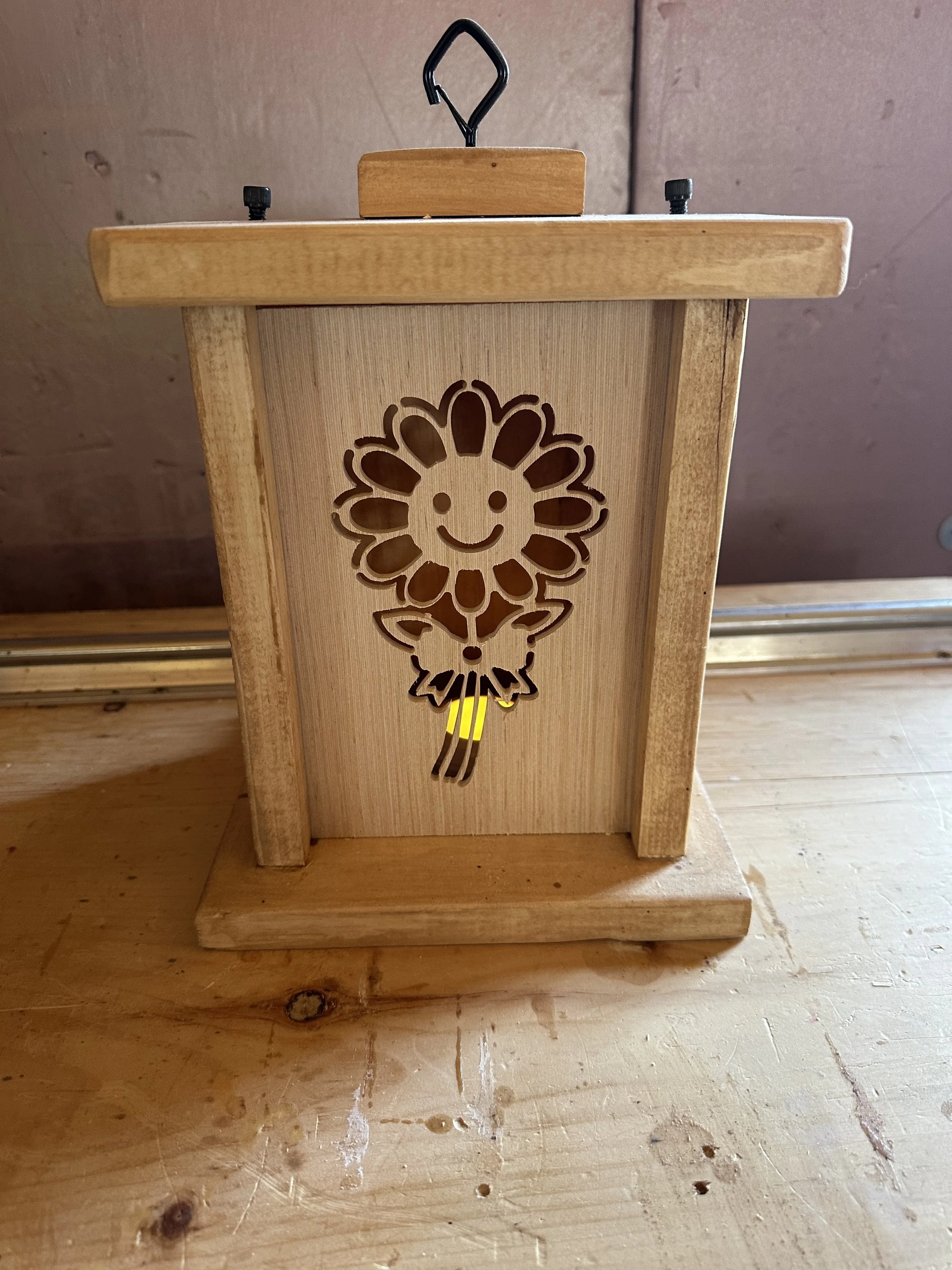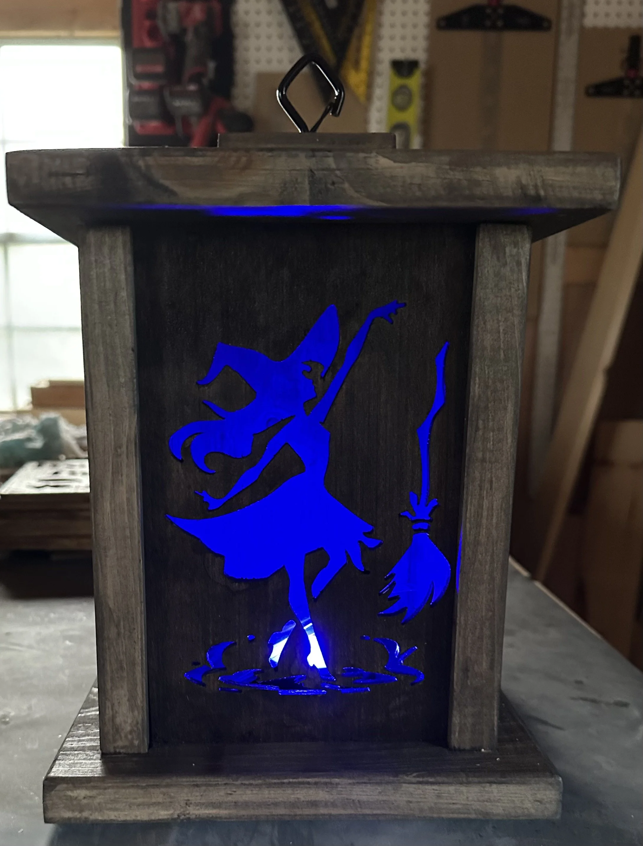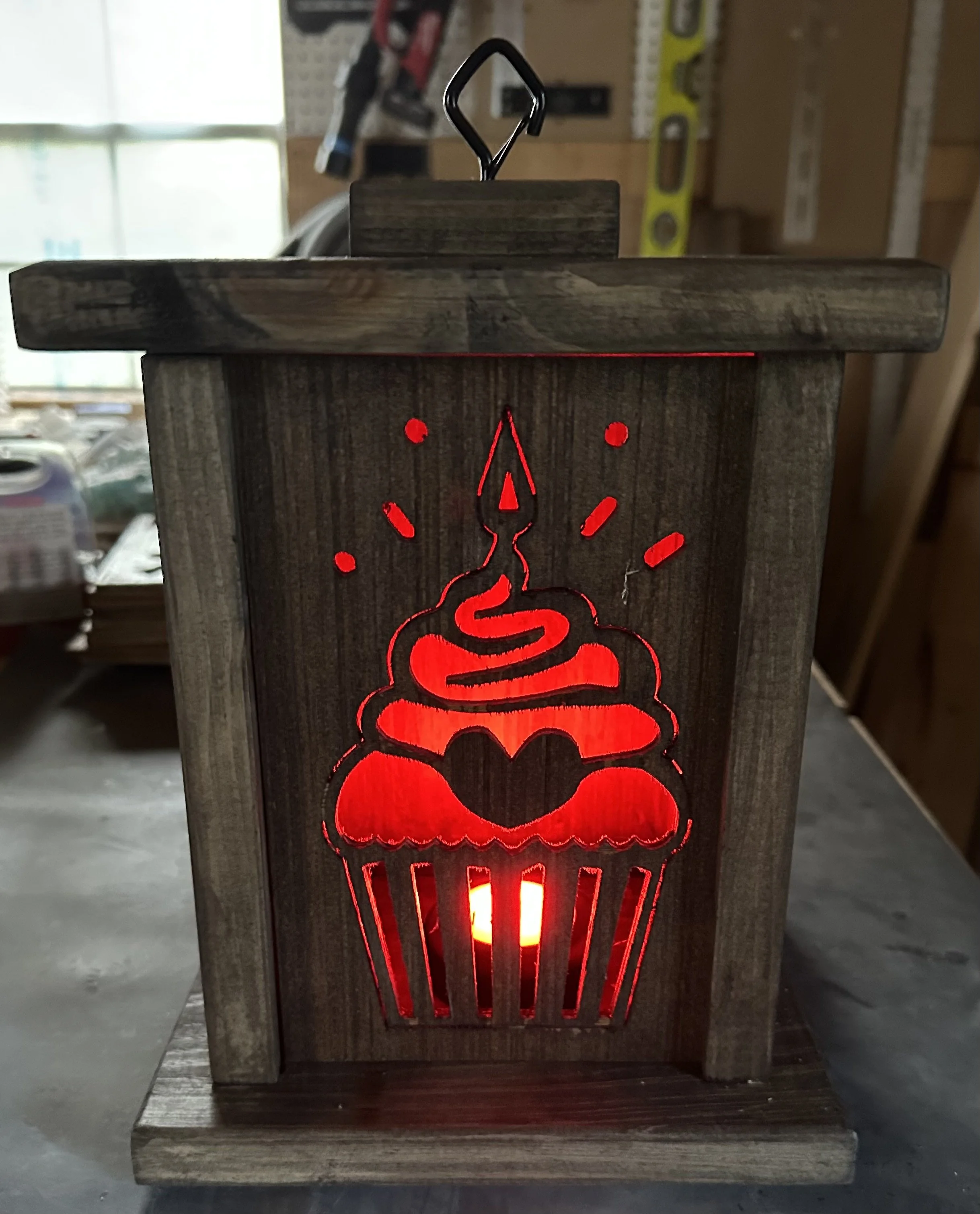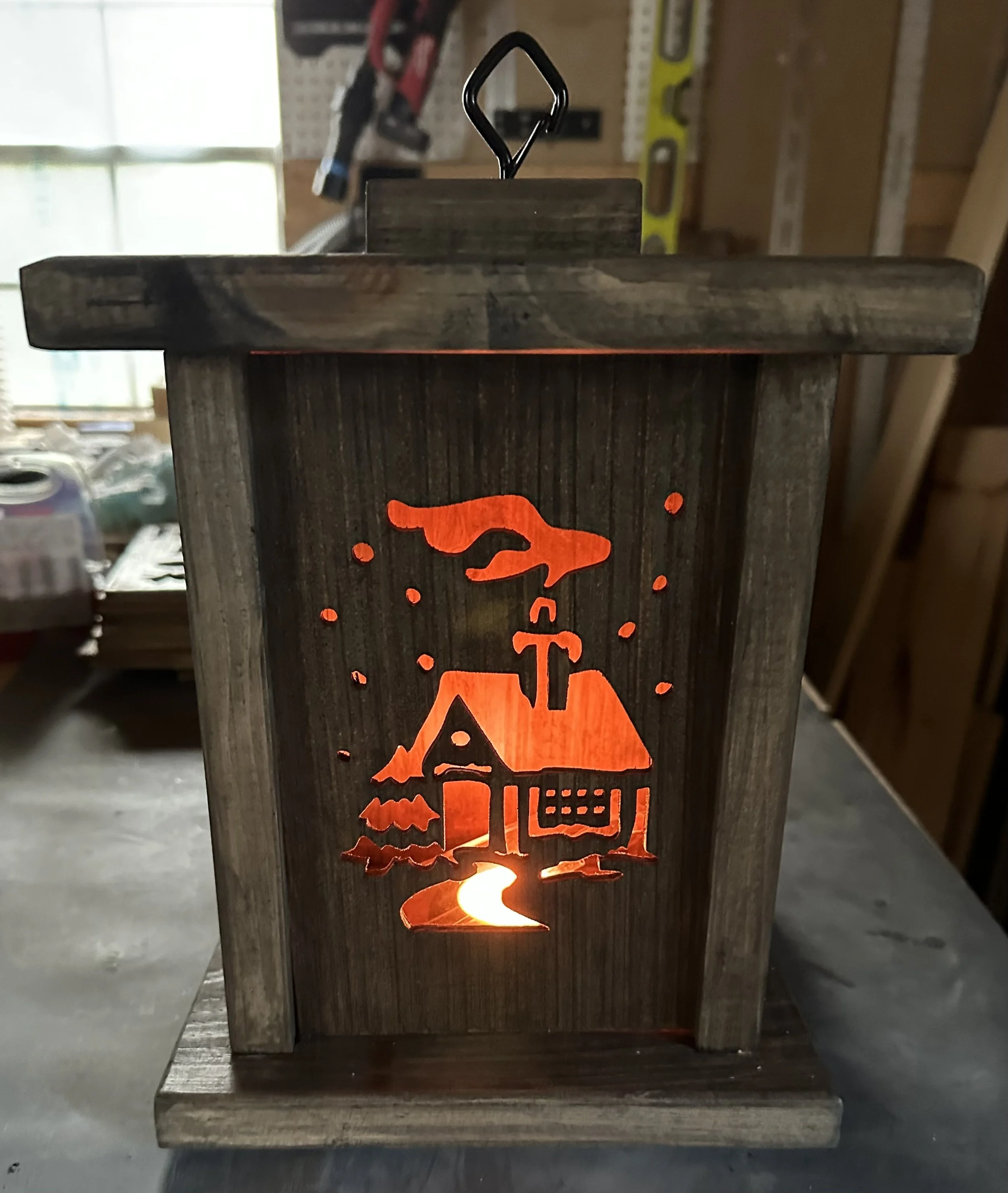 Wooden Lantern with changeable screens. Custom screens are available upon request. Lantern comes in 2 finishes - Antique and new Coffee (darker)